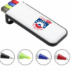 Sticky Flag Jotter Note Pad has recyclable kraft paper covers and a mini ball point pen, with recyclable shaft and black ink, inserted in an elastic loop. A spiral bound, blank memo pad, with 60 white sheets (120 pages) and sticky flags (25 sheets x 5 colors). Complies with Prop 65. 3.75″ W x 3.5″ H