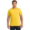 Features DryBlend® moisture wicking properties, heat transfer label, double needle sleeve and hem and taped neck and shoulders also has seamless double needle 7/8″ Collar. Complies with CPSIA.